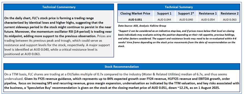 As per the previous recommendation on 01 August 2025, a ‘Speculative Buy’ rating was given on the stock at AUD 0.051, and noted below are the details of support and resistance provided in the previous report: