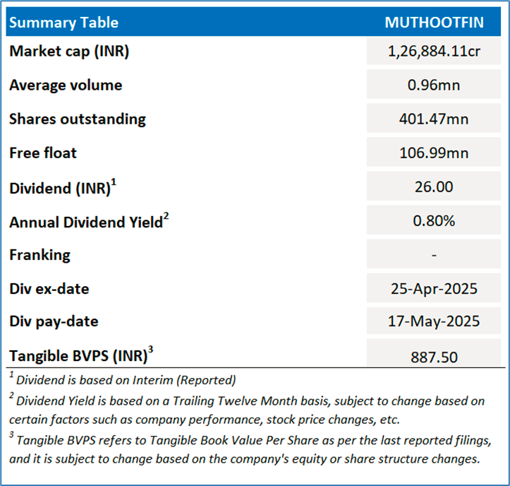 Company overview: Muthoot Finance Limited (NSE: MUTHOOTFIN) is a leading Indian NBFC specializing in gold-backed lending. It provides retail and business loans, housing finance, insurance, investments, and digital financial services, supported by a strong nationwide branch network. Kalkine’s Daily Report covers the Key Financial Metrics, Risks, Outlook, and Technical Analysis along with the Valuation, Target Price, and Recommendation on the stock.
