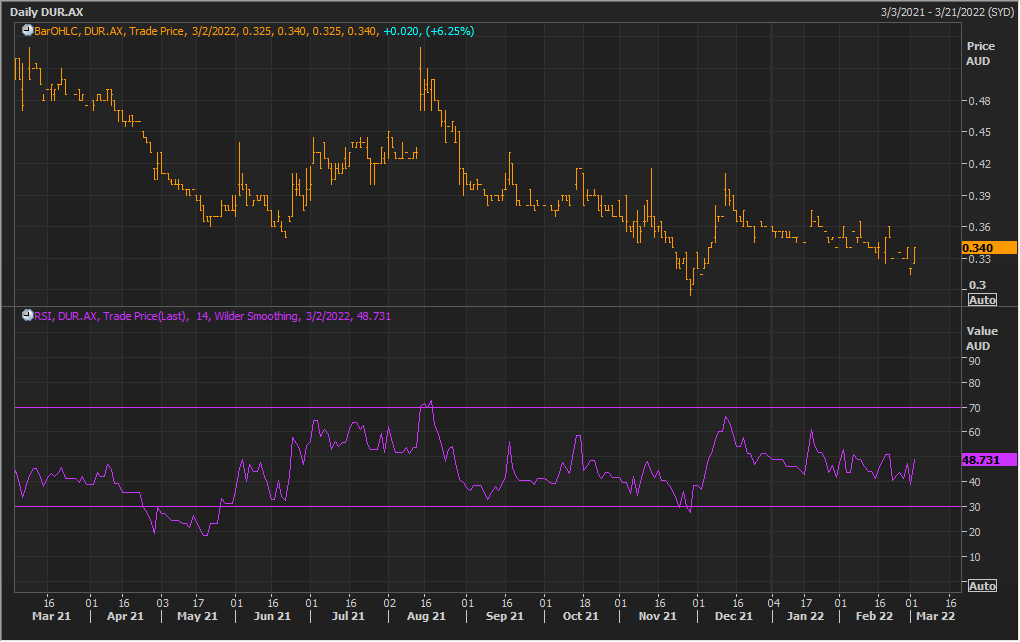 DUR Daily Technical Chart, Data Source: REFINITIV