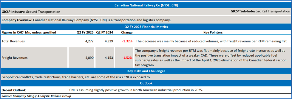 Company Overview: Canadian National Railway Company (NYSE: CNI) is a transportation and logistics company.