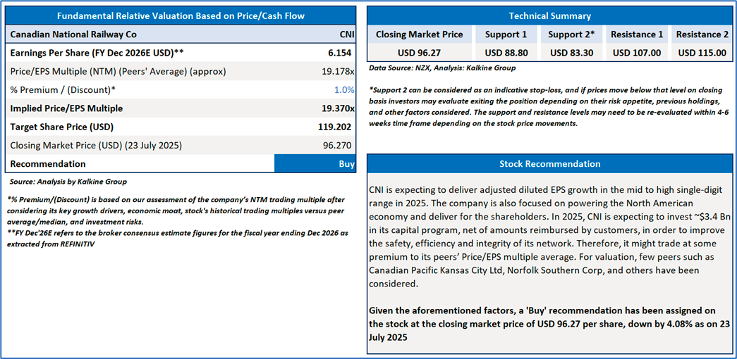 Section 2.0: Canadian National Railway Company (Buy at USD 96.27 closing price as on 23rd July 2025)
