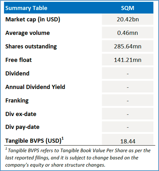 Company Overview: Sociedad Quimica y Minera de Chile SA (NYSE: SQM), is a producer of potassium nitrate and iodine. The Company produces specialty plant nutrients, iodine derivatives, lithium and its derivatives, potassium chloride, potassium sulfate and certain industrial chemicals. Kalkine’s Daily Report covers the Key Financial Metrics, Risks, Outlook, and Technical Analysis along with the Valuation, Target Price, and Recommendation on the stock.