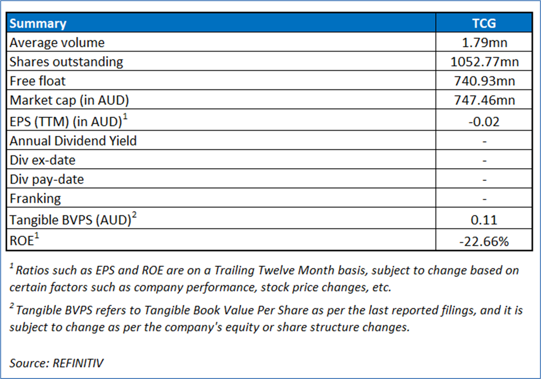 Company Overview: Turaco Gold Limited is an Australia-based gold exploration company, which is engaged in developing the Afema Project in southern Cote d’Ivoire, West Africa. The Afema Project is located in south-east Cote d’Ivoire near the Ghanian border and approximately 120 kilometers (km) east of Abidjan and is serviced by a new bituminized major highway connecting Abidjan to Ghana. Kalkine’s Daily Report covers the Key Financial Metrics, Risks, Outlook, Technical Analysis along with the Valuation, Target Price, and Recommendation on the stock.