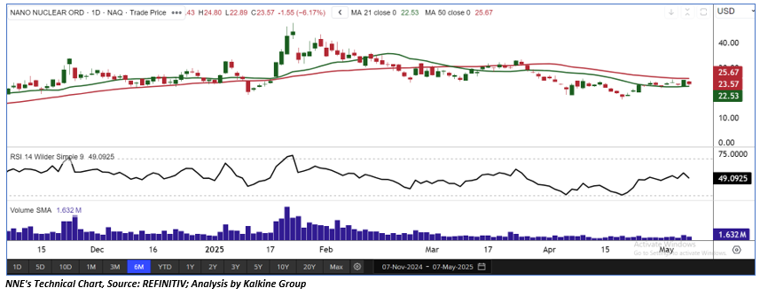 As per the above-mentioned price action, recent key business and financial updates, momentum in the stock over the last month, and technical indicators analysis, a ‘Watch’ rating has been given to Nano Nuclear Energy Inc. (NASDAQ: NNE) at its current market price of USD 23.57 as of May 7, 2025 (13:05 pm PDT).