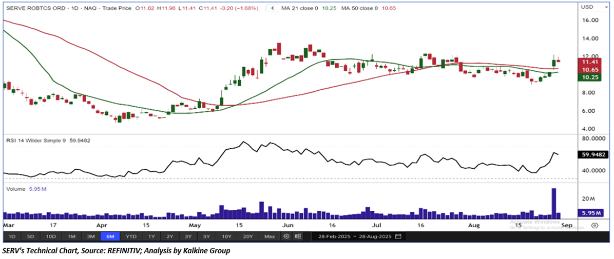 As per the above-mentioned price action, recent key business and financial updates, momentum in the stock over the last month, and technical indicators analysis, a ‘Speculative Buy’ rating has been given to Serve Robotics, Inc. (NASDAQ: SERV) at its current market price of USD 11.41 as of Aug 28, 2025 (11:30 am PDT).