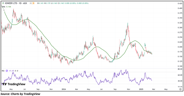 Considering the stock’s current price levels forming a symmetrical triangle pattern, and momentum oscillator analysis, a “Speculative Buy” recommendation is given on the stock. The stock was analysed as per the closing price of AUD 0.160 per share as on 21 February 2025, remained unchanged. Ioneer Limited (ASX: INR) was last covered in a report dated ’06 April 2023’.