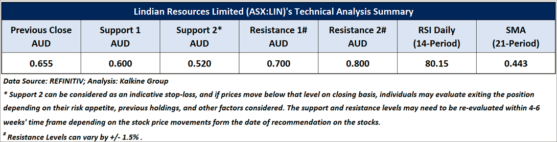 Company Overview: Lindian Resources Limited (ASX:LIN) is a mineral exploration company focused on developing high-grade rare earth element (REE) and bauxite assets, notably the flagship Kangankunde Rare Earths project in Malawi. This Report covers the Price Action, Technical Indicators Analysis along with the Support Levels, Resistance Levels, and Recommendations on this stock.