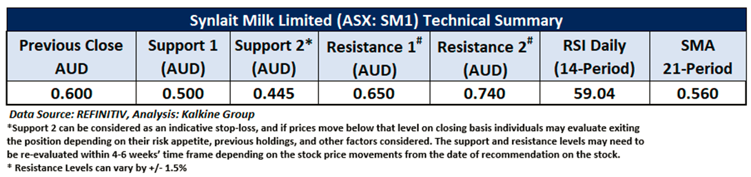 Company Overview: Synlait Milk Limited (ASX: SM1) manufactures, markets, sells, and exports dairy products under the Dairyworks, Rolling Meadow, and Alpine brands in China, rest of Asia, the Middle East, Africa, New Zealand, Australia, and internationally. This Report covers the Price Action, Technical Indicators Analysis along with the Support Levels, Resistance Levels, and Recommendations on this stock.