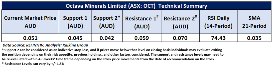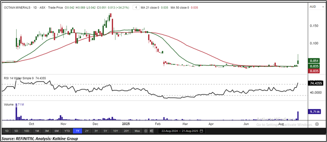 Company Overview: Octava Minerals Limited (ASX: OCT) is an Australian mineral exploration company primarily active in Western Australia, focusing on critical and energy-transition metals. The company was incorporated in 2020 and is headquartered in Nedlands, Western Australia. This Report covers the Price Action, Technical Indicators Analysis along with the Support Levels, Resistance Levels, and Recommendations on this stock.