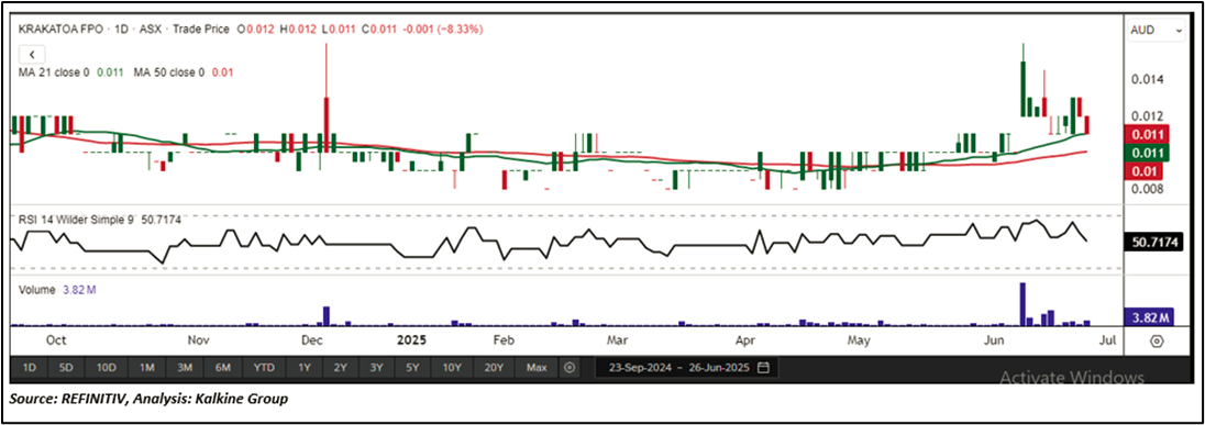 Company Overview: Krakatoa Resources Limited (ASX: KTA) is an Australian exploration company focused on the acquisition, development, and exploration of mineral resource projects across Australia. This Report covers the Price Action, Technical Indicators Analysis along with the Support Levels, Resistance Levels, and Recommendations on this stock.