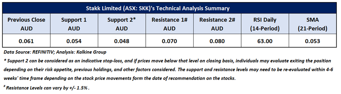 Company Overview: Stakk Limited (ASX: SKK) develops and delivers Stakk IQ, a modular, API-first embedded finance platform that provides the essential infrastructure for every modern financial application; and development of a smart mobile app for banking. This Report covers the Price Action, Technical Indicators Analysis along with the Support Levels, Resistance Levels, and Recommendations on this stock.