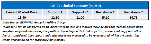 Individuals can evaluate the stock based on the support and resistance levels provided in the report in case of keen interest taking into consideration the risk-reward scenario.