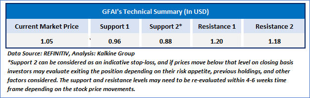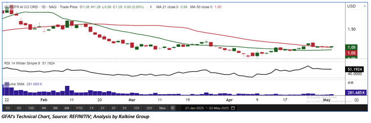 As per the above-mentioned price action, recent key business and financial updates, momentum in the stock over the last month, and technical indicators analysis, a ‘Speculative Buy’ rating has been given to Guardforce AI Co. (NASDAQ: GFAI) at its current market price of USD 1.05 as of May 2, 2025 (9:10 am PDT)