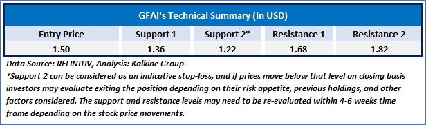 As per the above-mentioned price action, recent key business and financial updates, momentum in the stock over the last month, and technical indicators analysis, a ‘Speculative Buy’ rating has been given to Guardforce AI Co. (NASDAQ: GFAI) at its current market price of USD 1.50 as of Feb 7, 2025 (8:30 am EST).