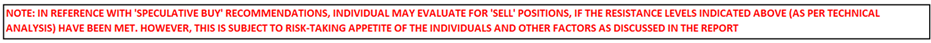 Individuals can evaluate the stock based on the support and resistance levels provided in the report in case of keen interest taking into consideration the risk-reward scenario.