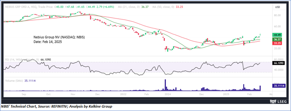 As per the above-mentioned price action, recent key business and financial updates, momentum in the stock over the last month, and technical indicators analysis, a ‘Speculative Buy’ rating has been given to Nebius Group NV (NASDAQ: NBIS) at its close price of USD 44.49 as of Feb 14, 2025.