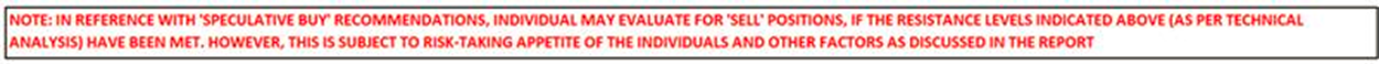 Related Risk: This report may be looked at from a high-risk perspective and a recommendation is provided for a short duration. This report is solely based on technical parameters, and the fundamental performance of the stocks has not been considered in the decision-making process. Other factors which could impact the stock prices include market risks, regulatory risks, interest rates risks, currency risks, social and political instability risks etc.