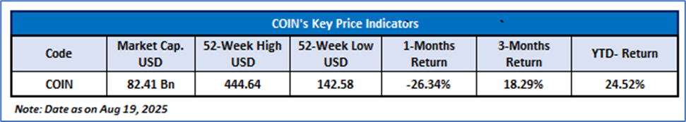 As per the above-mentioned price action, recent key business and financial updates, momentum in the stock over the last month, and technical indicators analysis, a ‘Watch’ rating has been given to Coinbase Global, Inc. (NASDAQ: COIN) at its current market price of USD 310.45 as of Aug 19, 2025 (7:30 am PDT).