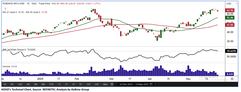 As per the above-mentioned price action, recent key business and financial updates, momentum in the stock over the last month, and technical indicators analysis, a ‘Watch’ rating has been given to Robinhood Markets, Inc. (NASDAQ: HOOD) at its current market price of USD 63.95 as of May 23, 2025 (8:10 am PDT).