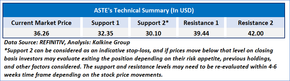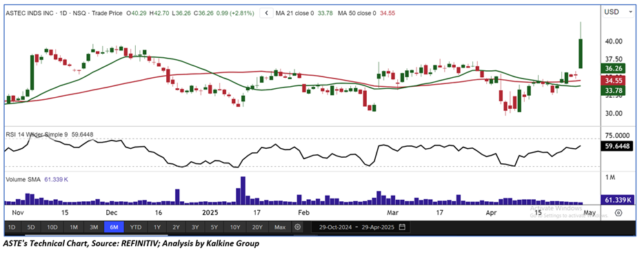 As per the above-mentioned price action, recent key business and financial updates, momentum in the stock over the last month, and technical indicators analysis, a ‘Buy’ rating has been given to Astec Industries, Inc. (NASDAQ: ASTE) at its current market price of USD 36.26 as of April 29, 2025 (7:40 am PDT).