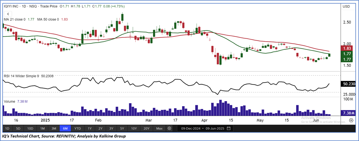 As per the above-mentioned price action, recent key business and financial updates, momentum in the stock over the last month, and technical indicators analysis, a ‘Speculative Buy’ rating has been given to IQIYI, Inc. (NASDAQ: IQ) at its current market price of USD 1.77 as of June 9, 2025 (8:05 am PDT).