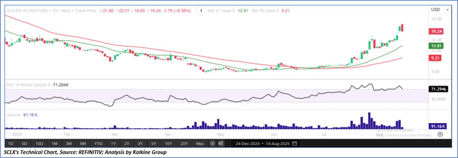 As per the above-mentioned price action, recent key business and financial updates, momentum in the stock over the last month, and technical indicators analysis, a ‘Watch’ rating has been given to Scilex Holding Company (NASDAQ: SCLX at its current market price of USD 19.24 as of Aug 14, 2025 (6:55 am PDT).