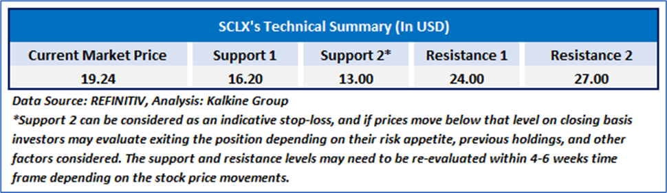 SCLX's stock price is nearing key resistance levels and could undergo a short-term correction to consolidate before potentially continuing its upward trend. The 14-period RSI is showing divergence compared to the price action, which may lead to a mild correction in the near term. Nonetheless, the stock remains above its 21 and 50-period simple moving averages, which could serve as support levels in the near future. Ultimately, the stock's future direction will depend largely on these critical support and resistance zones, as they will influence the supply and demand forces shaping its movement.