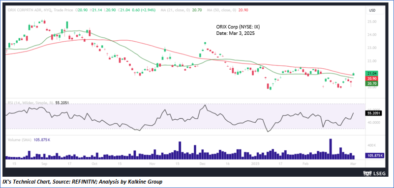 As per the above-mentioned price action, recent key business and financial updates, momentum in the stock over the last month, and technical indicators analysis, a ‘Buy’ rating has been given to ORIX Corp (NYSE: IX) at its current market price of USD 21.04 as of Mar 3, 2025 (9:55 am EST).
