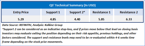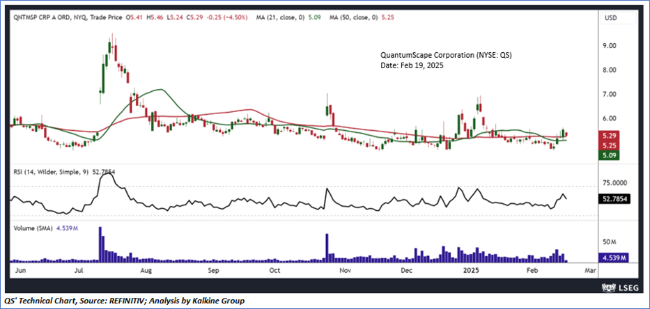 As per the above-mentioned price action, recent key business and financial updates, momentum in the stock over the last month, and technical indicators analysis, a ‘Speculative Buy’ rating has been given to QuantumScape Corporation (NYSE: QS) at its current market price of USD 5.29 as of Feb 19, 2025 (11:05 am EST)