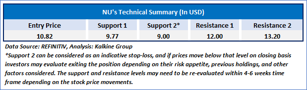 As per the above-mentioned price action, recent key business and financial updates, momentum in the stock over the last month, and technical indicators analysis, a ‘Buy’ rating has been given to Nu Holdings Ltd (NYSE: NU) at its closing price of USD 10.82 as of February 21, 2025.