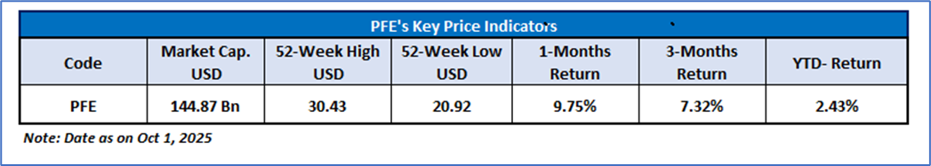 Pfizer Inc. (NYSE: PFE) is a research-based biopharmaceutical company. The Company is engaged in the discovery, development, manufacture, marketing, sale and distribution of biopharmaceutical products around the world. The Company operates through two segments: Biopharma and PC1.