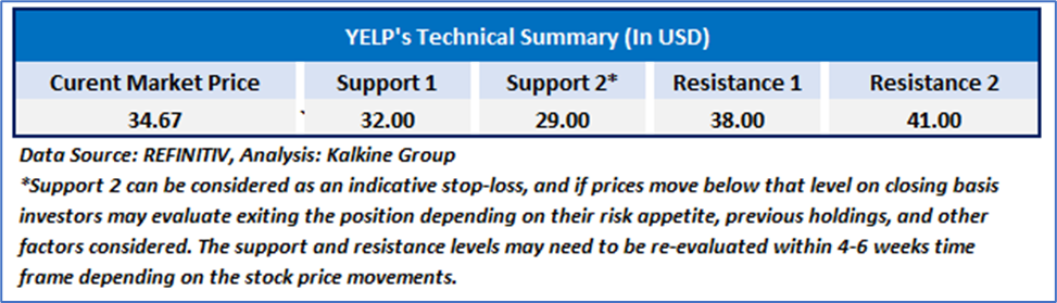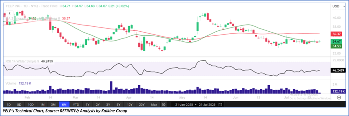 As per the above-mentioned price action, recent key business and financial updates, momentum in the stock over the last month, and technical indicators analysis, a ‘Buy’ rating has been given to Yelp Inc. (NYSE: YELP) at its current market price of USD 34.67 as of July 21, 2025 (10:15 am PDT).