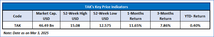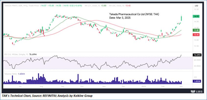 As per the above-mentioned price action, recent key business and financial updates, momentum in the stock over the last month, and technical indicators analysis, a ‘Buy’ rating has been given to Takeda Pharmaceutical Co Ltd (NYSE: TAK) at its current market price of USD 14.93 as of Mar 3, 2025 (9:50 am EST).