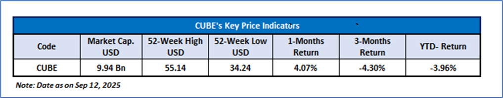 CubeSmart (NYSE: CUBE) is a self-administered and self-managed real estate investment trust. The Company's self-storage properties are designed to offer climate-controlled storage space for residential and commercial customers. It owns its assets and conducts its operations through the CubeSmart, L.P. (Operating Partnership), and subsidiaries of the Operating Partnership. Its customers rent storage cubes for their exclusive use, on a month-to-month basis.