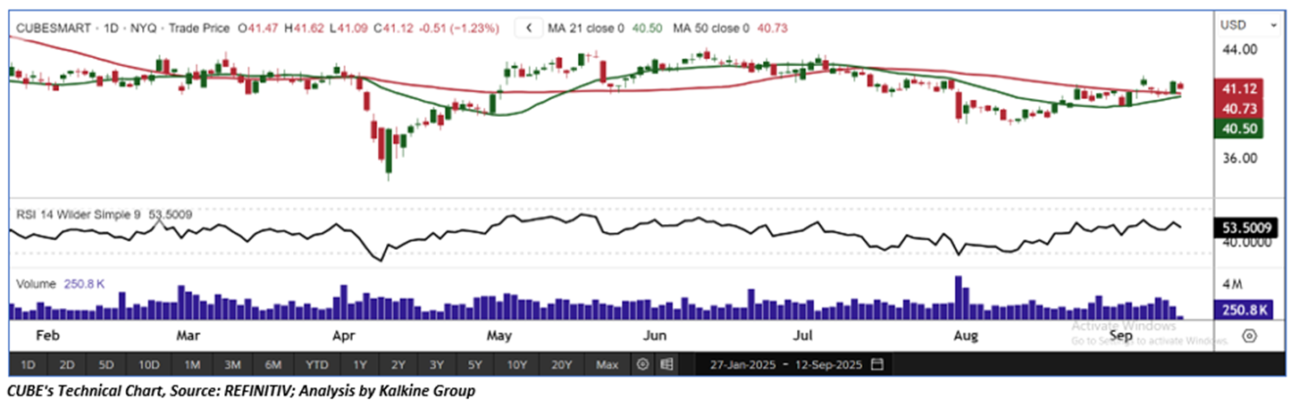 As per the above-mentioned price action, recent key business and financial updates, momentum in the stock over the last month, and technical indicators analysis, a ‘Buy’ rating has been given to CubeSmart (NYSE: CUBE) at its current market price of USD 41.12 as of Sep 12, 2025 (9:25 am PDT).
