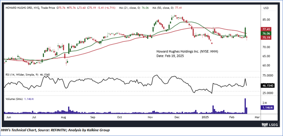 As per the above-mentioned price action, recent key business and financial updates, momentum in the stock over the last month, and technical indicators analysis, a ‘Buy’ rating has been given to Howard Hughes Holdings Inc. (NYSE: HHH) at its current market price of USD 75.19 as of Feb 19, 2025 (7:50 am EST).