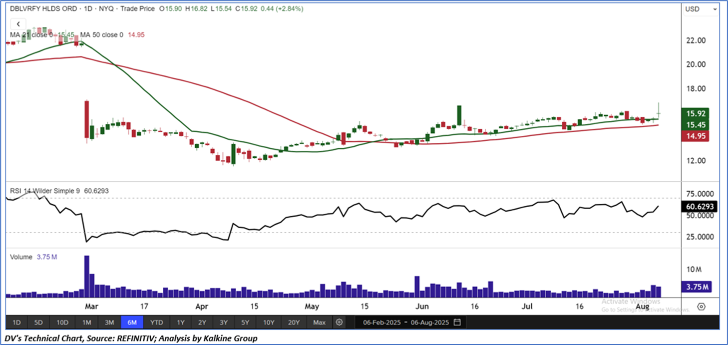 As per the above-mentioned price action, recent key business and financial updates, momentum in the stock over the last month, and technical indicators analysis, a ‘Speculative Buy’ rating has been given to DoubleVerify Holdings, Inc. (NYSE: DV) at its current market price of USD 15.92 as of Aug 6, 2025 (12:30 PDT).