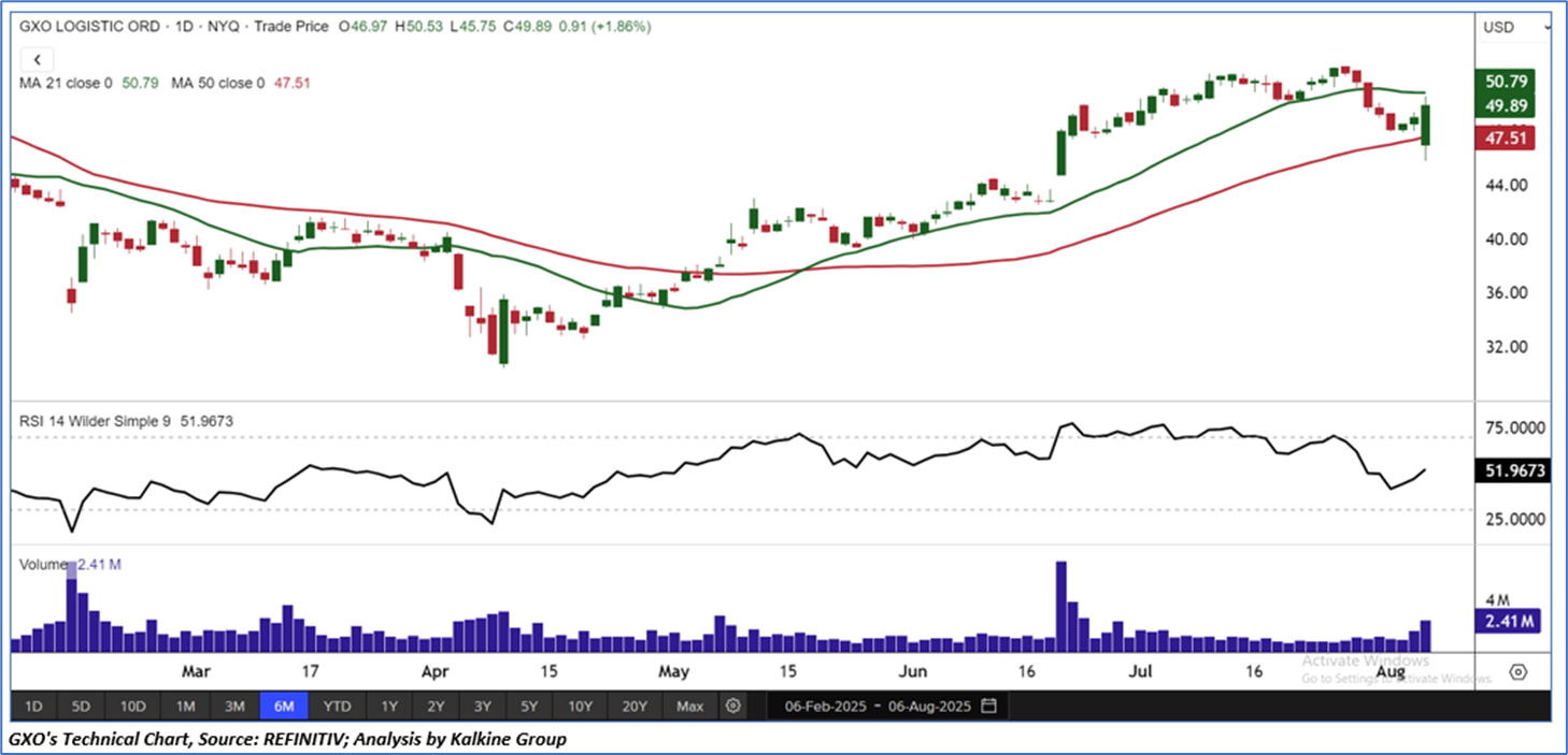 As per the above-mentioned price action, recent key business and financial updates, momentum in the stock over the last month, and technical indicators analysis, a ‘Speculative Buy’ rating has been given to GXO Logistics, Inc. (NYSE: GXO) at its current market price of USD 49.89 as of Aug 6, 2025 (12:30 PDT).