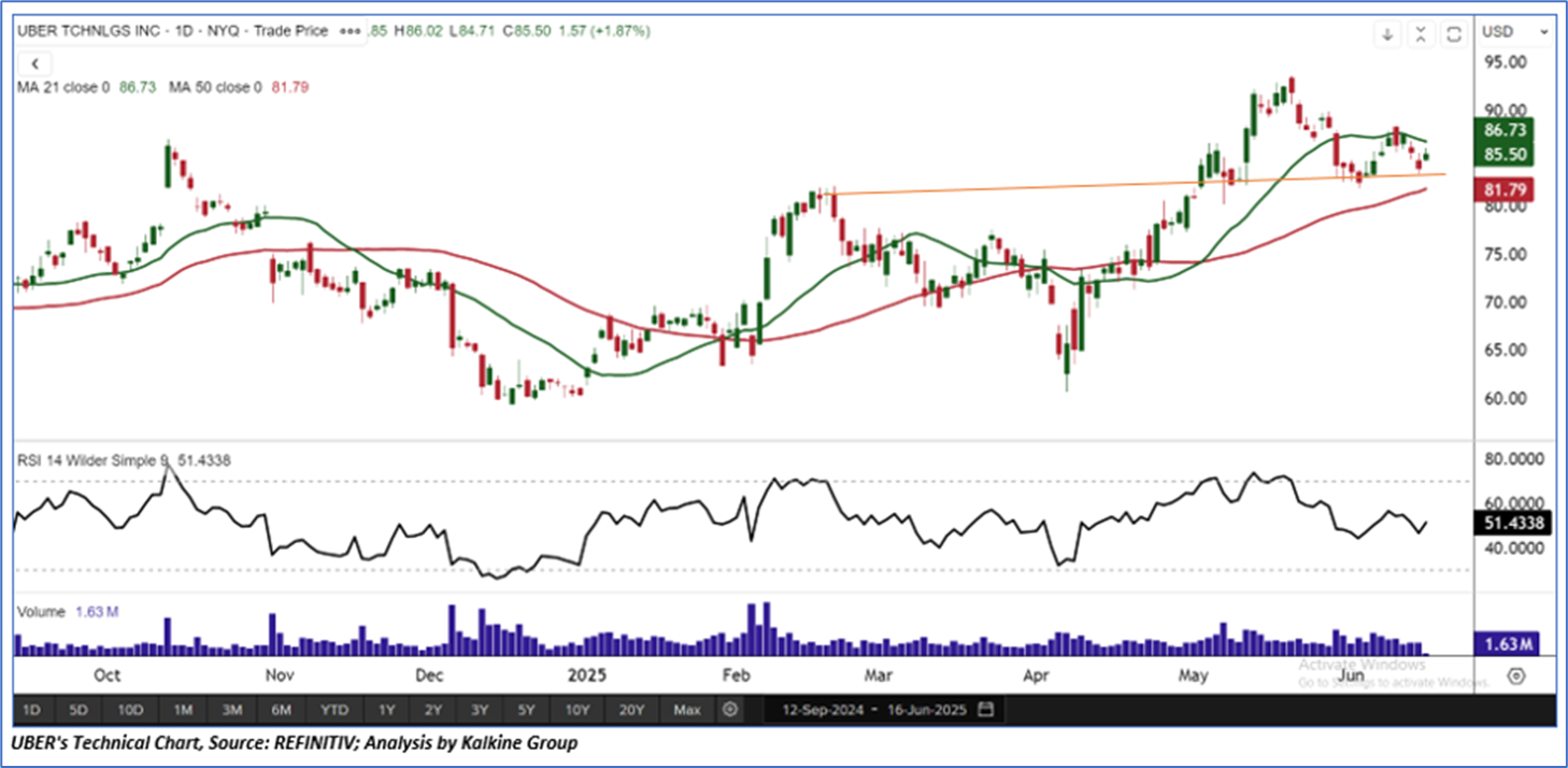 As per the above-mentioned price action, recent key business and financial updates, momentum in the stock over the last month, and technical indicators analysis, a ‘Buy’ rating has been given to Uber Technologies, Inc. (NYSE: UBER) at its current market price of USD 85.50 as of June 16, 2025 (7:10 am PDT).