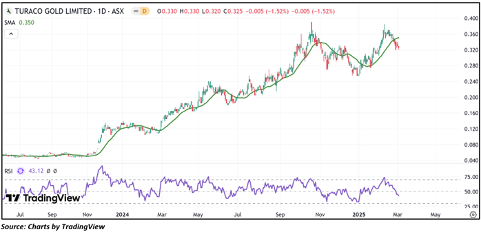 Company Overview: Kairos Minerals Limited (ASX: KAI) operates as a resource exploration company in Australia. It primarily explores for gold, rare earth element, and lithium properties. Santana Minerals Limited (ASX: SMI) engages in the exploration and evaluation of gold and silver properties in New Zealand, Cambodia, and Mexico. Turaco Gold Limited (ASX: TCG) engages in the acquisition, exploration, and development of gold deposits in Cote d’Ivoire. This Report covers the Price Action, Technical Indicators Analysis along with the Support Levels, Resistance Levels, and Recommendations on these stocks.