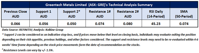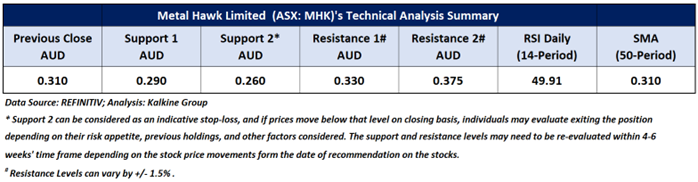 Company Overview: Metal Hawk Limited (ASX: MHK) engages in the evaluation, exploration, and development of mineral resource projects, exploring gold, lithium, and nickel sulphide deposits. GreenTech Metals Limited (ASX: GRE) engages in the exploration and development of mineral properties, exploring nickel, copper, zinc, gold, lithium, and cobalt deposits. Grange Resources Limited (ASX: GRR) owns and operates an integrated iron ore mining and pellet production business in Australia and internationally, involving in the mining, processing, and sale of iron ore; and exploration, evaluation, and development of mineral resources. This Report covers the Price Action, Technical Indicators Analysis along with the Support Levels, Resistance Levels, and Recommendations on these stocks.