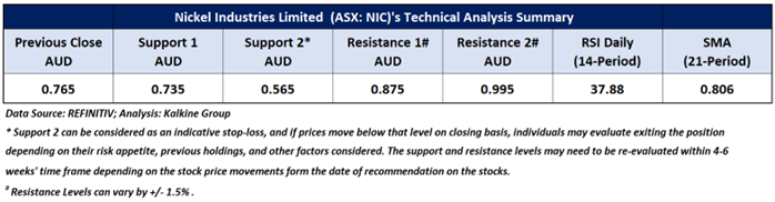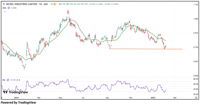 Considering the stock’s current price levels rebounding from the significant support formed by its previous trough, and momentum oscillator analysis, a “Speculative Buy” recommendation is given on the stock. The stock was analysed as per the closing price of AUD 0.765 per share as on 06 February 2025, up by 2.68%. Nickel Industries Limited (ASX: NIC) was last covered in a report dated ’27 January 2024’.