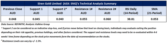 Company Overview: Siren Gold Limited (ASX: SNG) engages in the exploration and evaluation of gold properties, primarily holding interests in projects located within the Reefton goldfield on the South Island of New Zealand. Advance Metals Limited (ASX: AVM) operates as a mineral exploration company in Canada and Australia, holding interest in projects in Arizona, Mexico, and Oklahoma. This Report covers the Price Action, Technical Indicators Analysis along with the Support Levels, Resistance Levels, and Recommendations on these stocks.