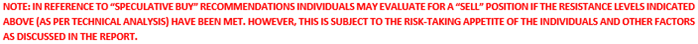 Note 3: Investment decisions should be made depending on an individual's appetite for upside potential, risks, holding duration, and any previous holdings. An 'Exit' from the stock can be considered if the Target Price mentioned as per the Valuation and or the technical levels provided has been achieved and is subject to the factors discussed above.