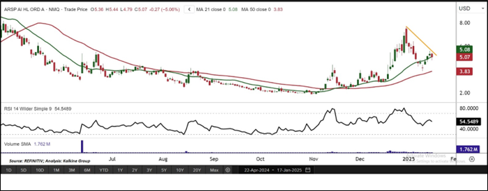 Considering the stock’s current trading volume, momentum oscillator analysis, and its position below the descending trendline support, a “watch” recommendation is given on the stock. The stock was analysed as per the closing price of USD 5.07 per share as on 17th January 2025, down by 5.06%.