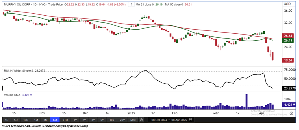 Murphy Oil Corporation (NYSE: MUR) is an independent company focused on oil and gas exploration and production, operating both onshore and offshore. As per our previous US Dailies report published on ‘MUR’ on 4th Oct 2024, Kalkine provided an ‘Buy’ stance on the stock at USD 35.99 based on fundamental analysis and the stock price has now moved down by ~45.42% since then.