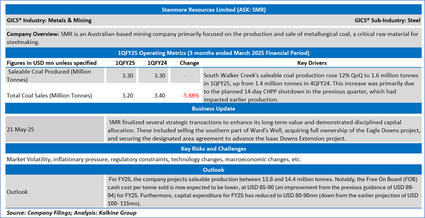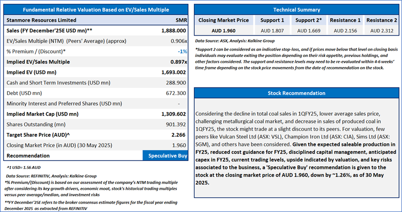 Section 2.0: Stanmore Resources Limited (‘Speculative Buy’ at AUD 1.960, closing market price per share as on 30 May 2025)