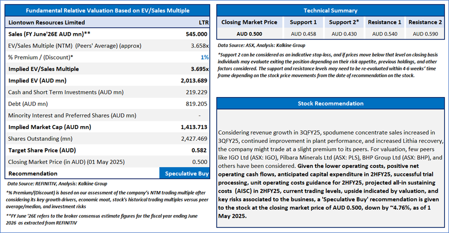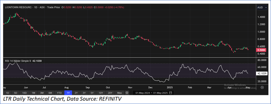 Section 4.0: Liontown Resources Limited (‘Speculative Buy’ at AUD 0.500, closing market price per share as on 1 May 2025)