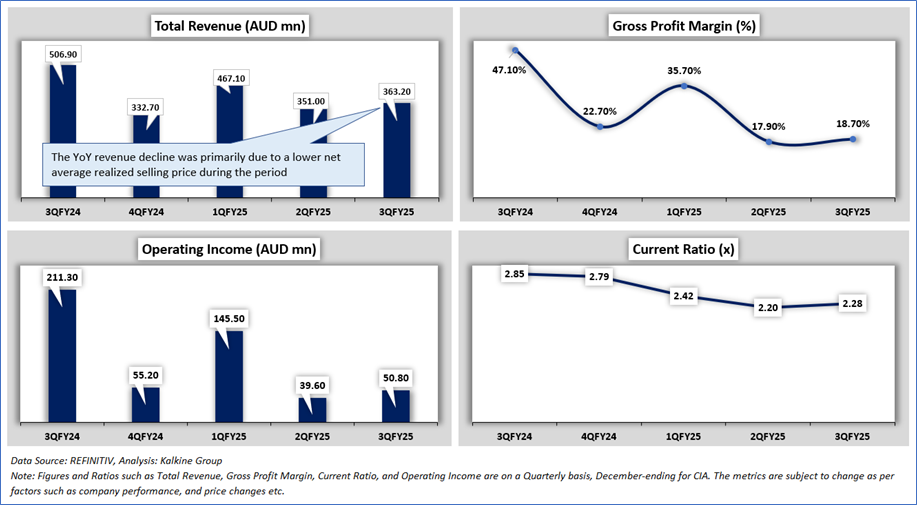 The stock has witnessed a dip of ~17.06% in the last 3 months, and over the past nine months, it has decreased by ~22.74%. The stock has a 52-week low and 52-week high of AUD 3.940 and AUD 7.960, respectively, and is currently trading below the 52-week high-low average. CIA was last covered in a report dated ‘16 April 2025’.