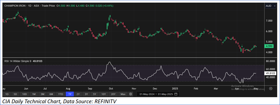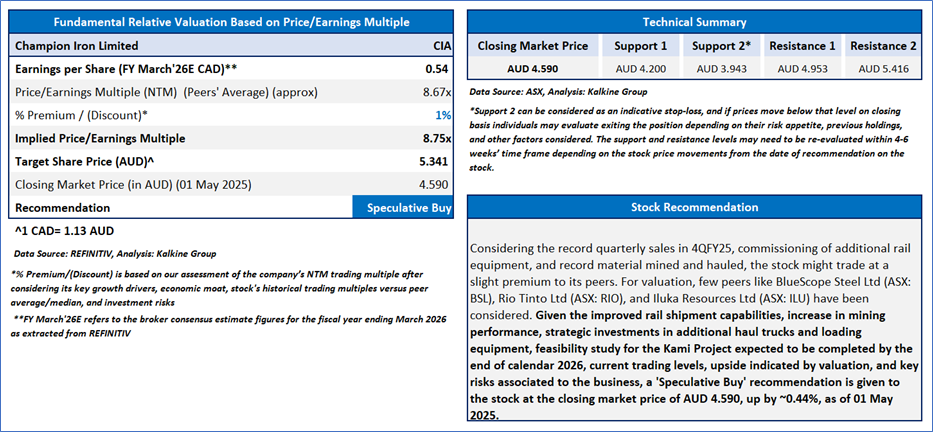 Section 2.0: Champion Iron Limited (‘Speculative Buy’ at AUD 4.590, closing market price per share as on 1 May 2025)
